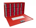 Контейнер для самоспасателей ГДЗК-15 предназначен для удобства размещения, хранения и оперативной выдачи пятнадцати газодымозащитных комплектов ГДЗК. Допускается размещение в контейнерах специальных огнезащитных накидок (СОН) и медицинских бескаркасных огнестойких накидок (НМБО).