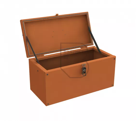 Ящик изготовлен из стали толщиной 0,5 мм и окрашен в оранжевый цвет.